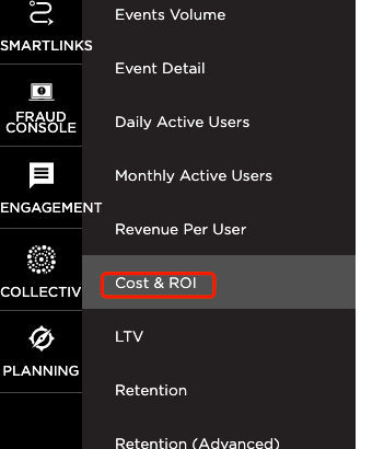 成本与投资回报率页面提供了总成本的详细视图,点击成本,安装成本,投资回报率或总收入为选定的应用程序。进一步改进是通过由使用的分裂和间隔下拉菜单提供。