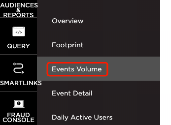 - 选择Analytics>Events Volume。