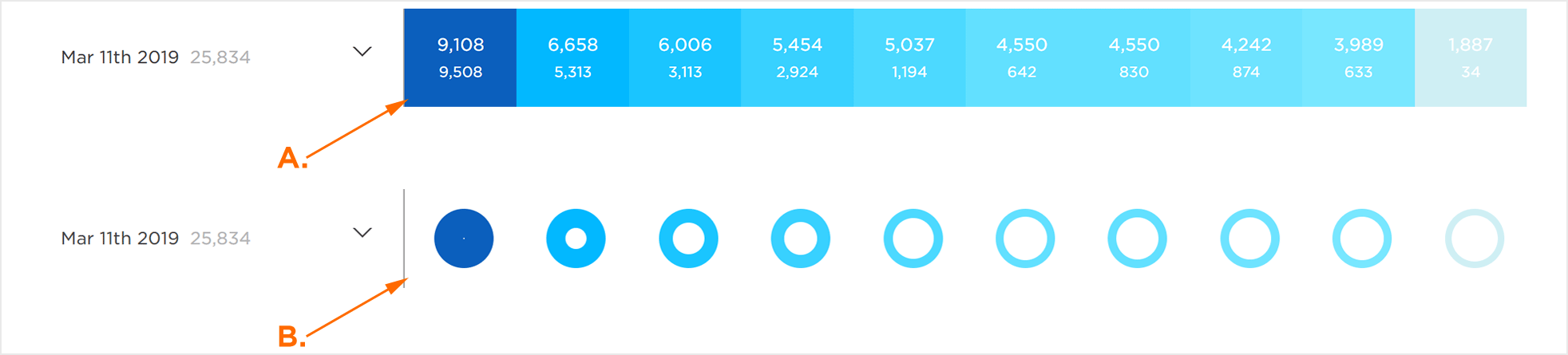 注意:图形显示中的数据是颜色协调的。颜色越深表示保留率越高。