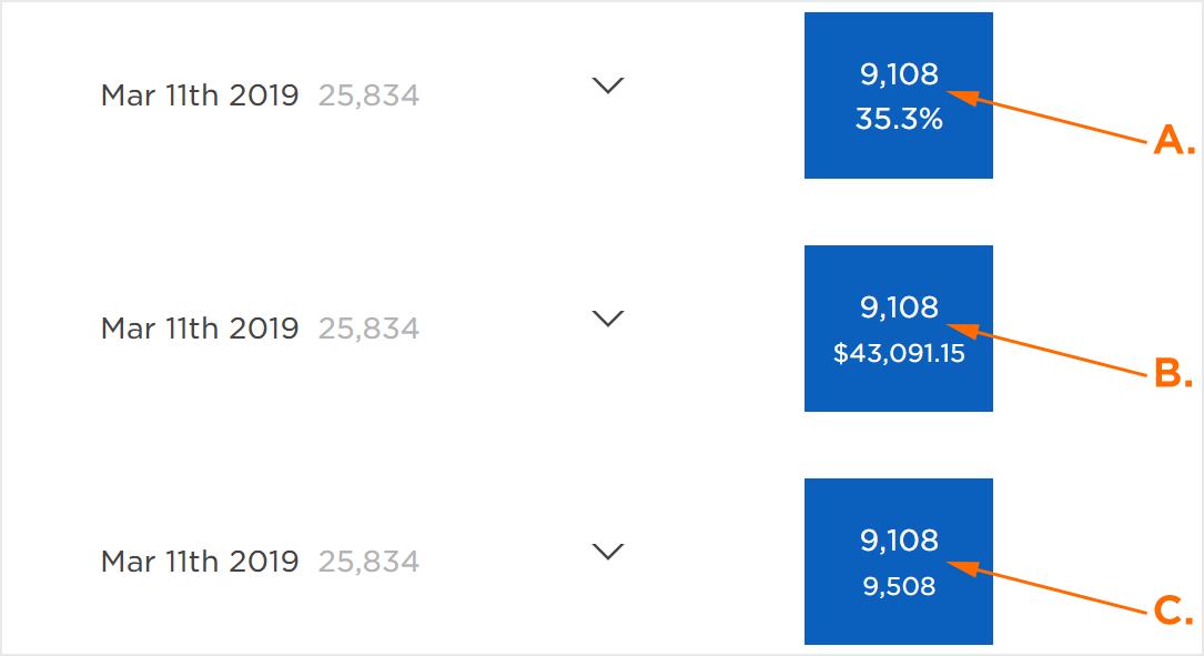 注:圆环图中孔的大小表示选定的叠加层。例如,如果选择“总收入”叠加层,则孔的大小表示收入金额。漏洞越小,收入越高。