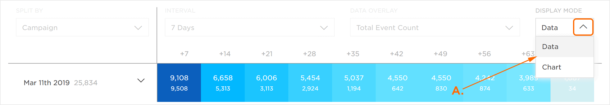 留存图表分为2个主要部分,在选定的时间间隔内的日期,留存在数据或图表的形式图形显示。