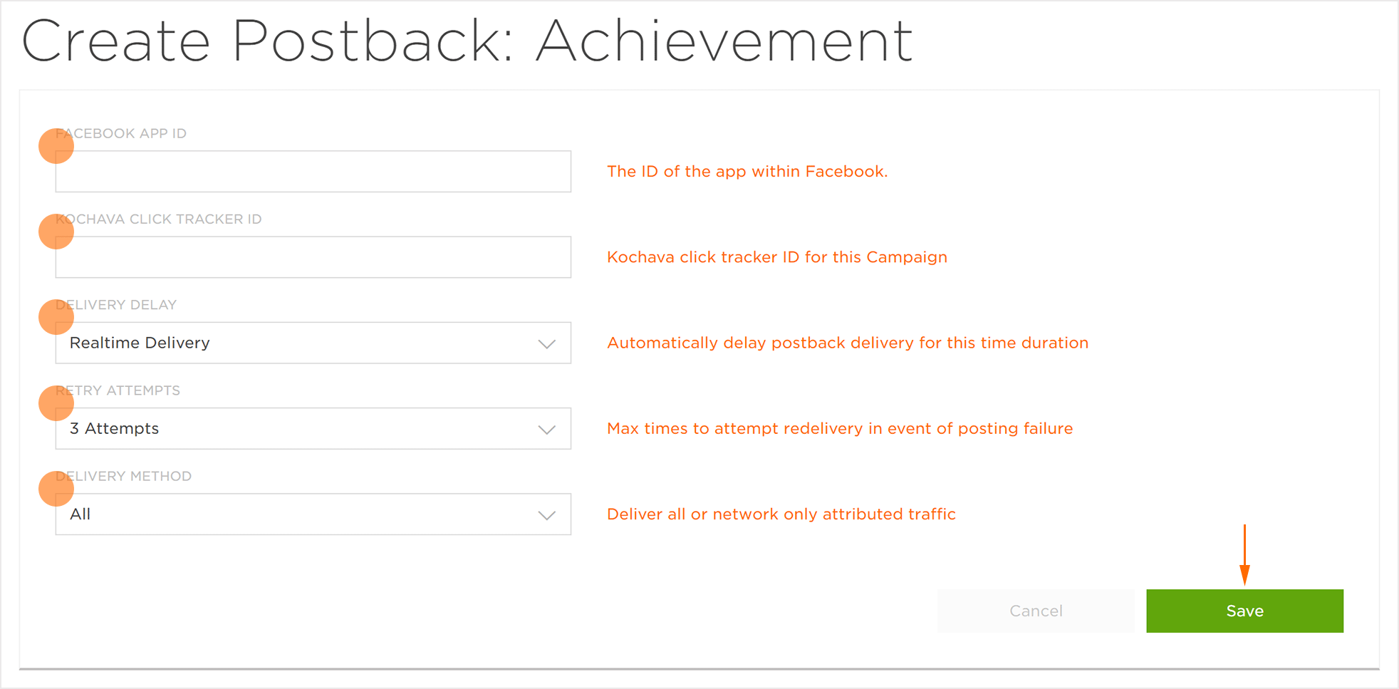 注意:每个FMP网络所需的数据将根据所选网络而有所不同。联系FMP以找到完成回发所需的网络特定数据。选择交付延迟。 (可选的)