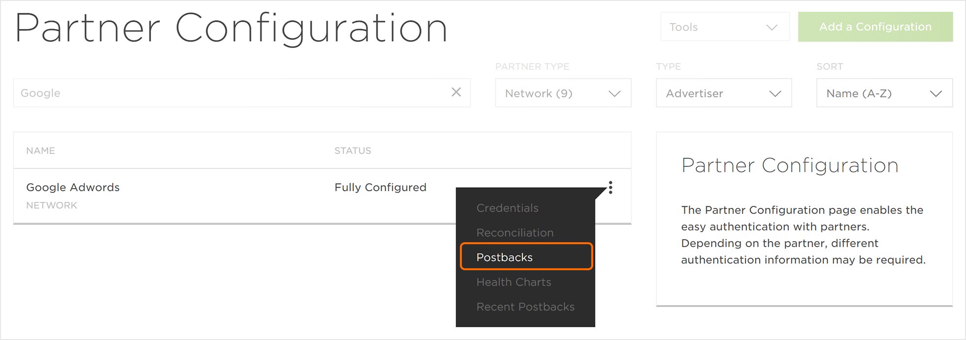 单击“保存并创建回发”。 (直接导航到“合作伙伴配置”页面)。