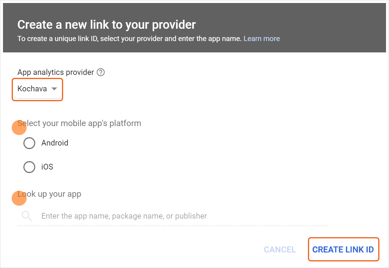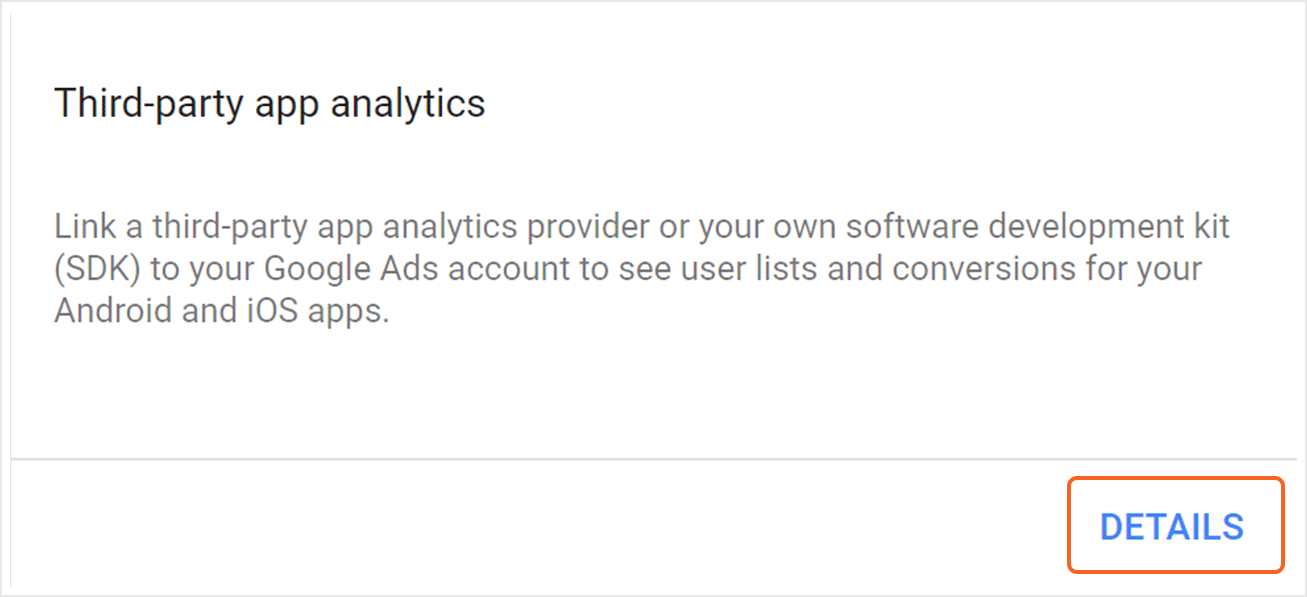 注意:如果需要在单个应用的多个帐户中跟踪转化,请使用跨帐户转化跟踪创建Link ID并在帐户之间共享并在MCC帐户中,或创建Link ID并跨账户共享。只有链接的所有者才能授予访问权限并共享指向其他帐户的链接。