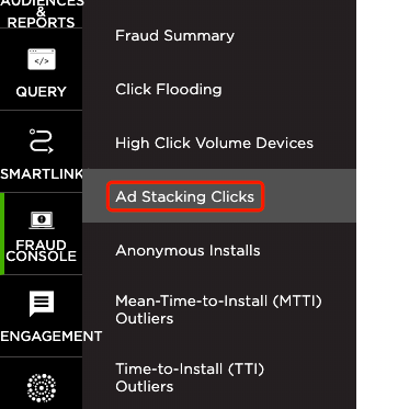 在欺诈控制台中,广告堆叠点击页面提供了可能将多个广告放在一个广告位上的广告平台和site id的详细视图。该页面提供了可能的广告堆叠的可视概览以及每个广告堆叠类别的详细数字,它提供了对潜在欺诈的强大分析。
