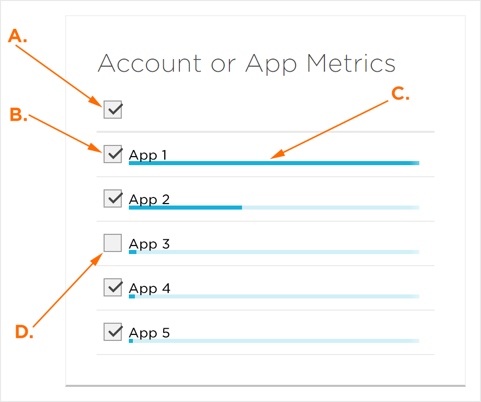 平台中显示的数据单击/安装不匹配的卷图和数据详细信息部分显示与所选帐户或应用关联的数据。默认情况下,所有高级发布商帐户或营销应用都已选中。帐户或应用可能被取消选择,与该帐户或应用关联的数据量将通过该帐户或应用正下方的蓝条指示。