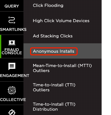 欺诈控制台匿名安装页面提供了IP地址匿名安装次数的详细视图。