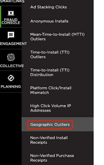 - 选择欺诈控制台>地理异常值。