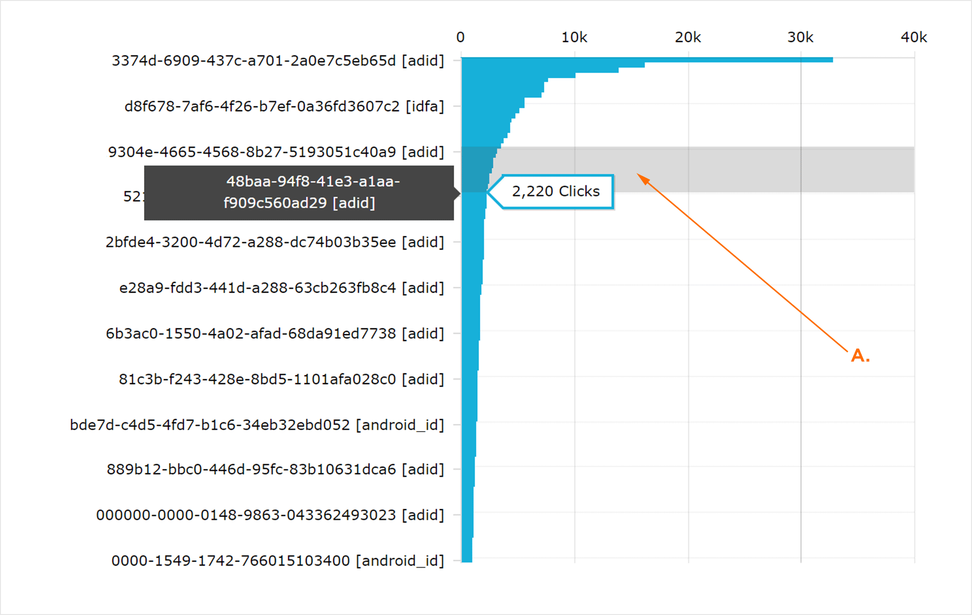 大点击设备页面提供了大量点击的设备的详细视图。