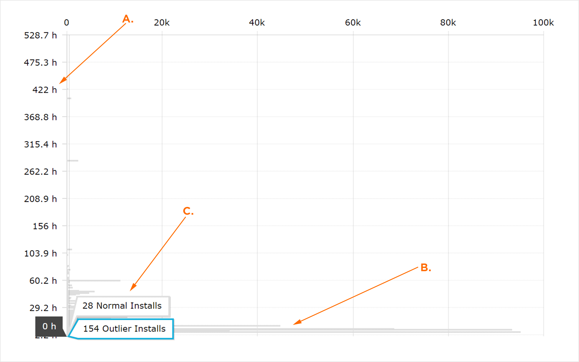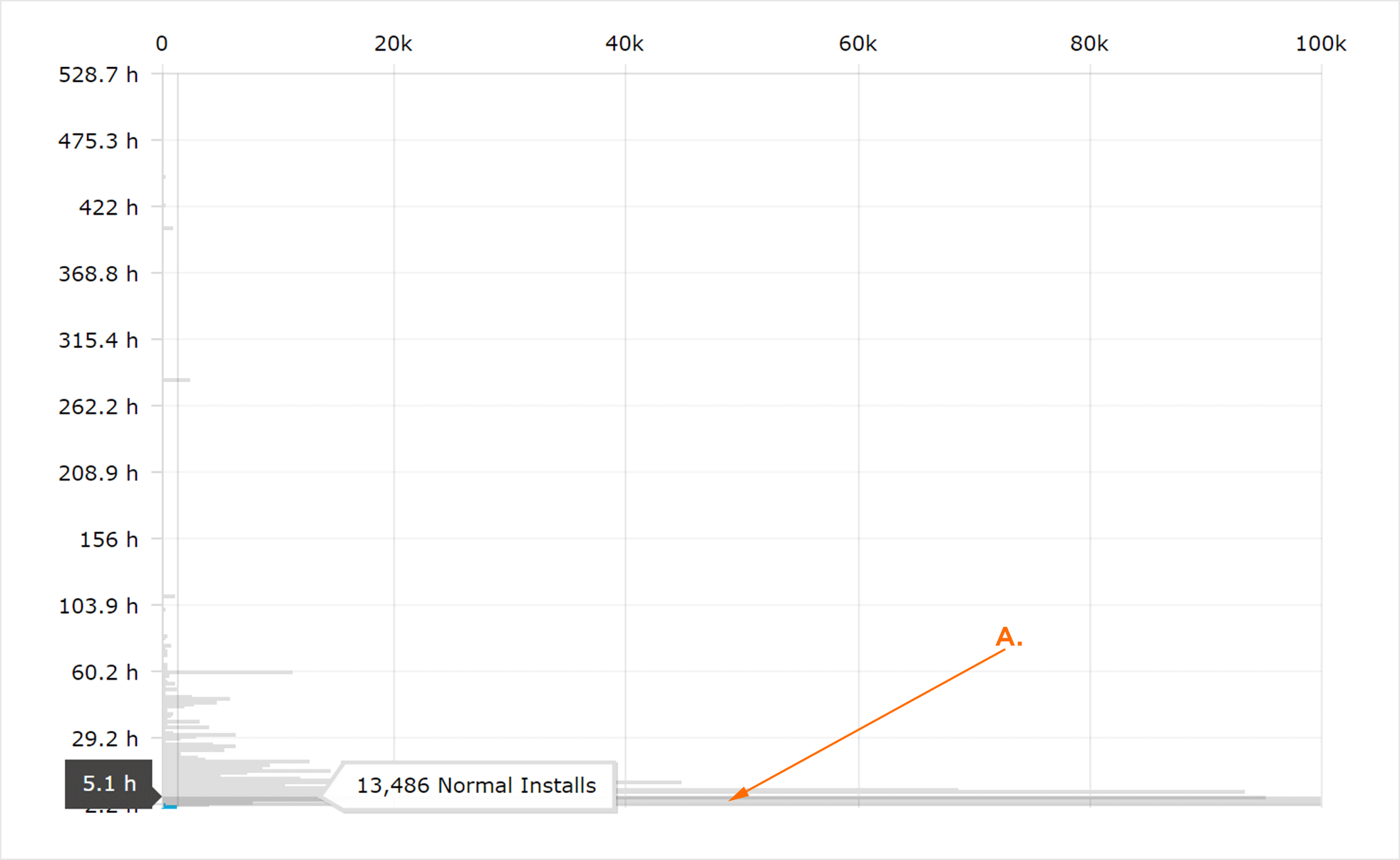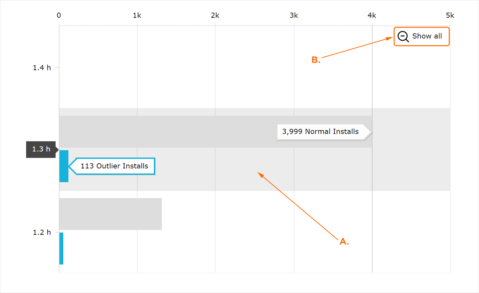 注意:相应时间内发生的安装总数以灰色显示,异常值以蓝色显示。