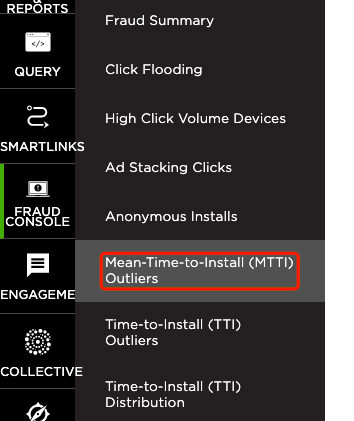 - 选择欺诈控制台>平均安装时间(MTTI)异常值。