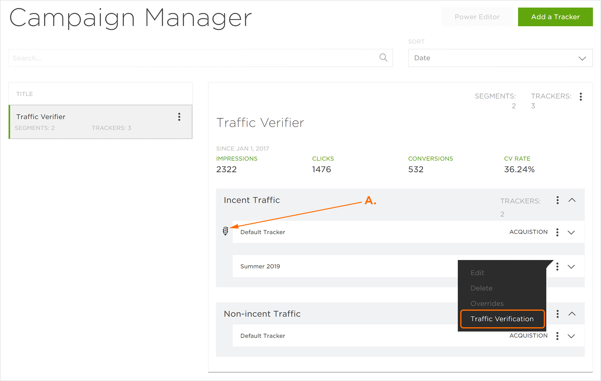 找到所需的跟踪器并选择跟踪工具(⋮)>交通验证.