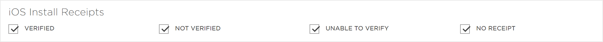 iOS安装收据部分提供了确定哪种类型的安装收据是可接受的机会,没有选定安装收据的任何其他安装将被确定为无效。