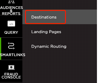 SmartLinks目的地分为三个部分。第一部分提供了用于定位目的地的工具,第二部分是已创建的目的地列表,第三部分是目的地详细信息部分。